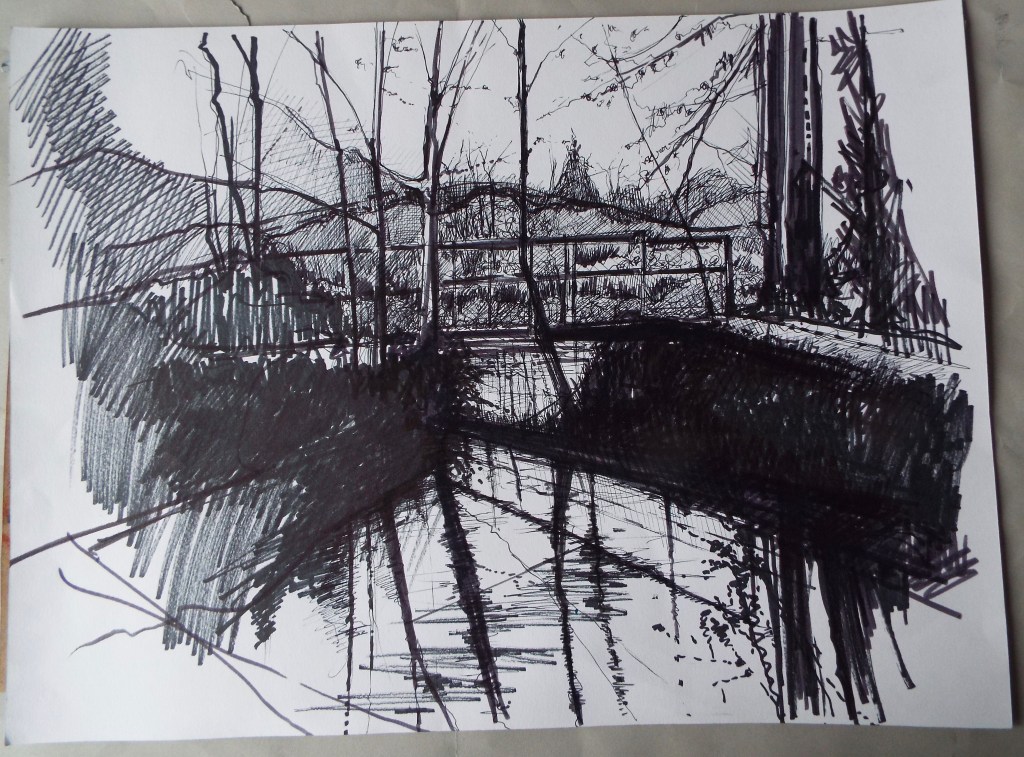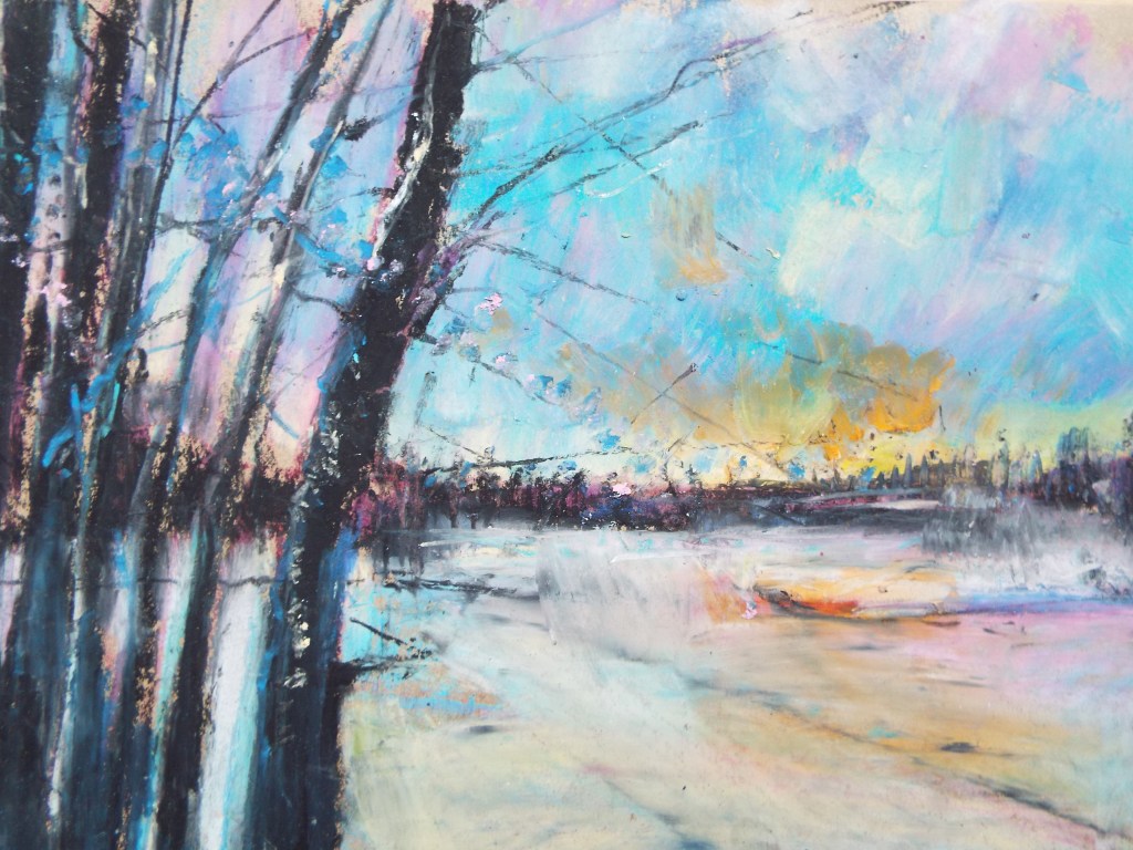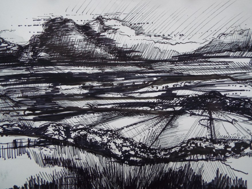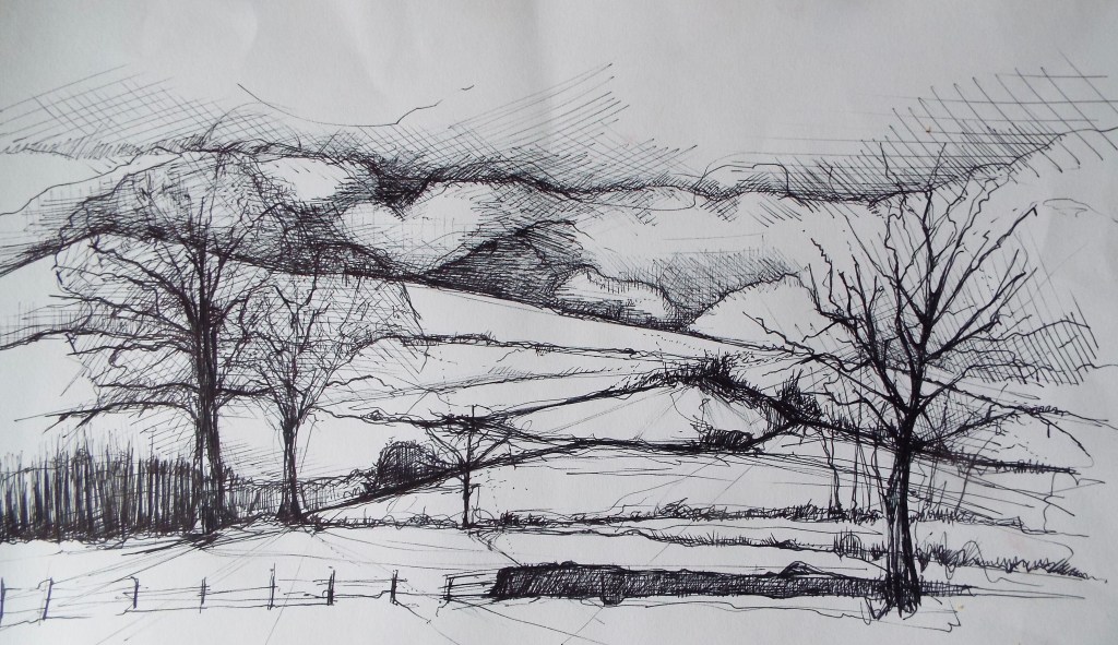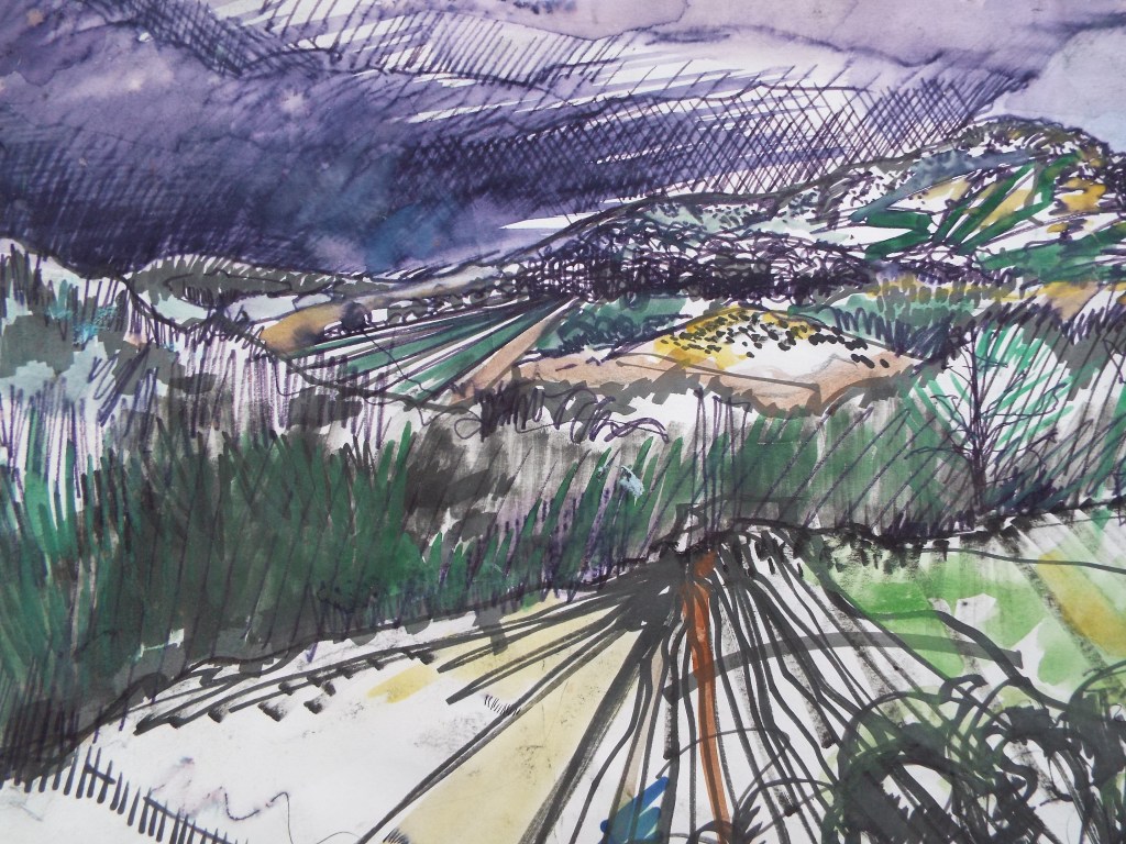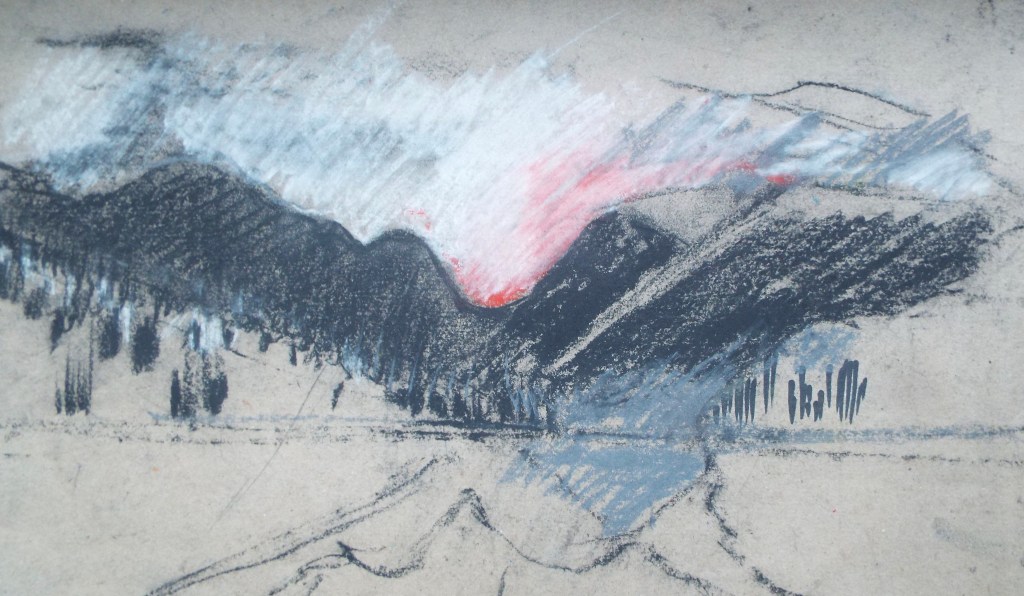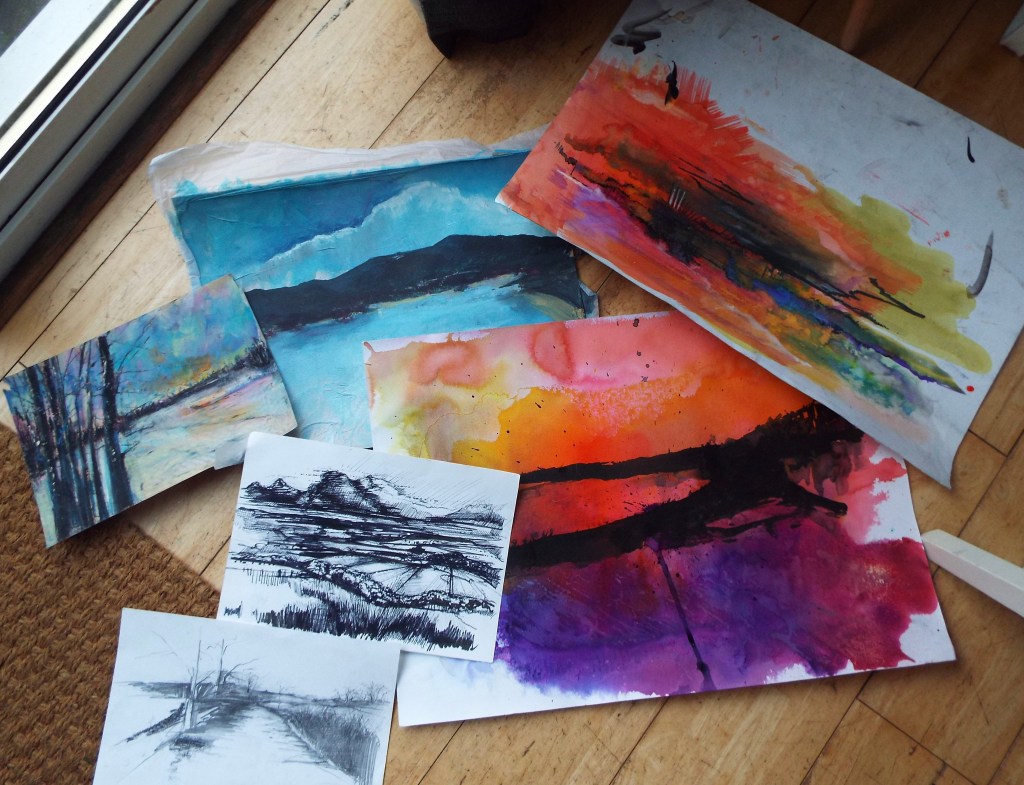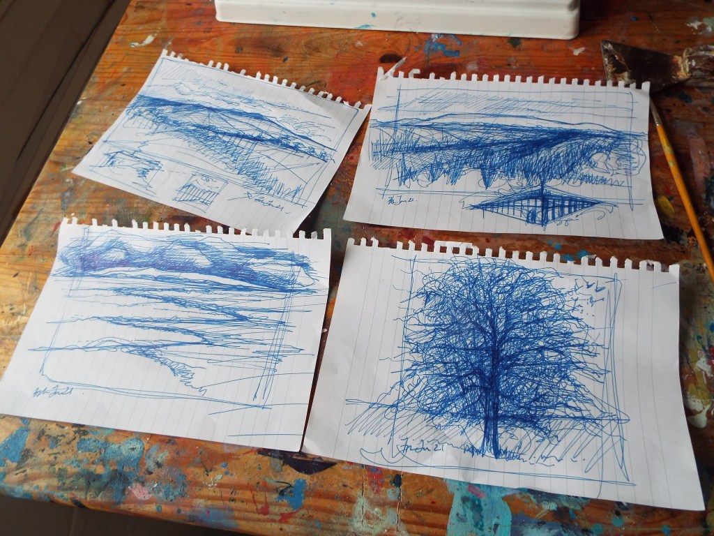 When visiting locations Stephen generates ideas for paintings by taking a series of photographs and sketching if weather permits. He sketches using a range of materials including chalks, charcoal, inks and watercolours, before returning to his studio to work on finished paintings.